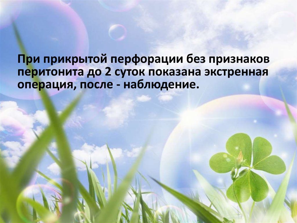 При прикрытой перфорации без признаковперитонита до 2 суток показана экстренная