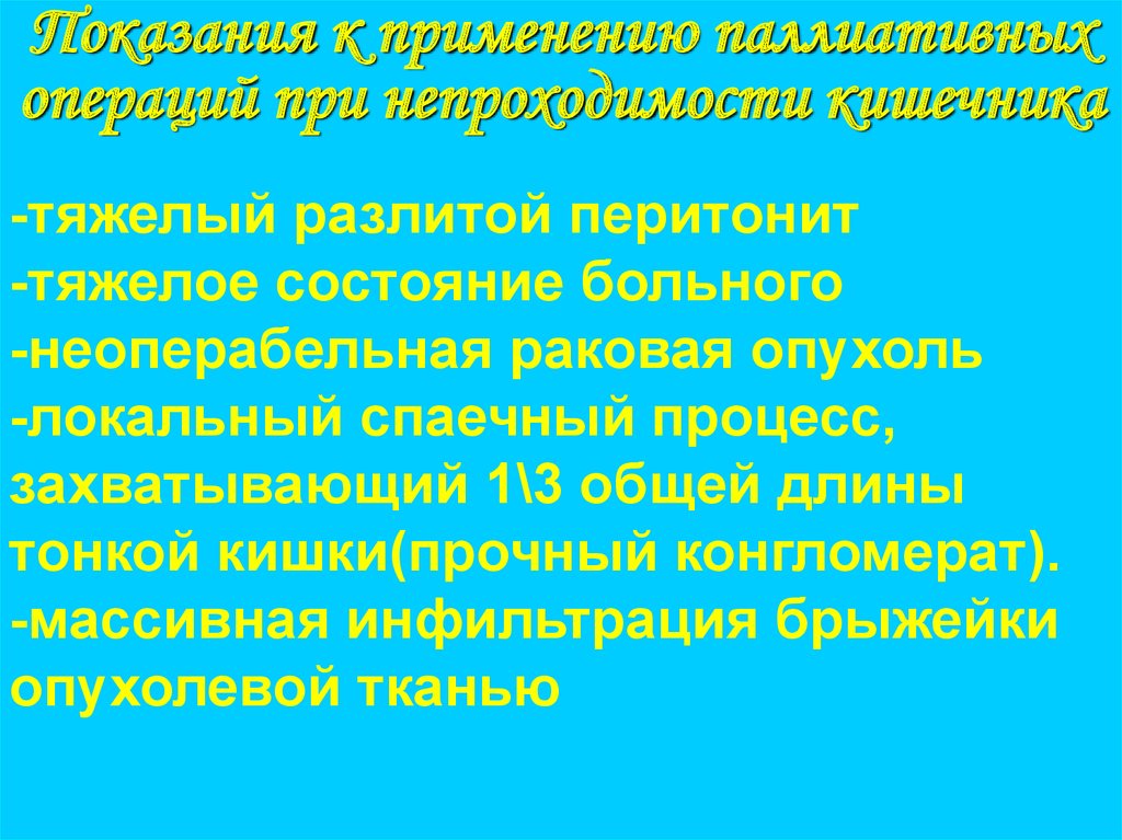 Показания к применению паллиативныхопераций при непроходимости кишечника