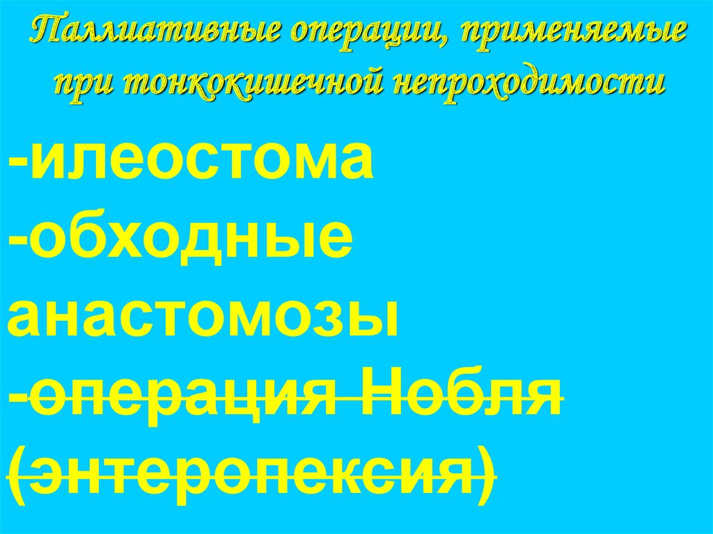 Паллиативные операции, применяемыепри тонкокишечной непроходимости