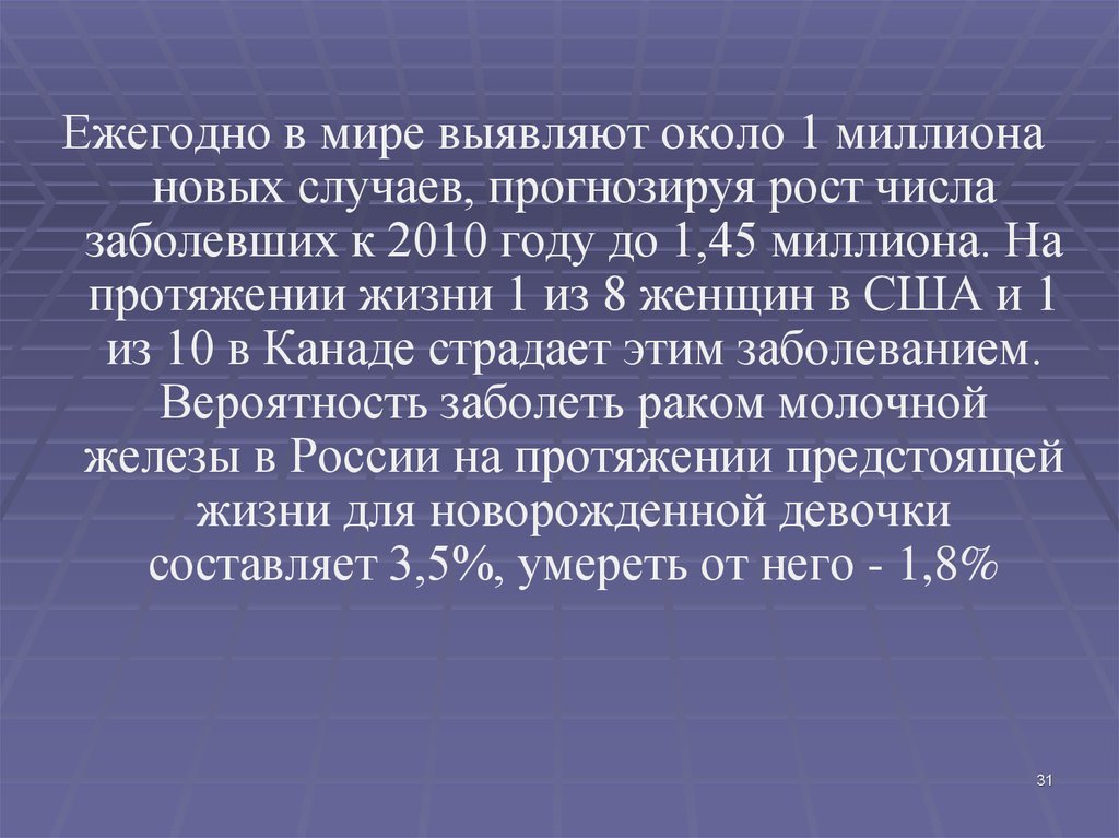 Вероятность заболеть раком молочной