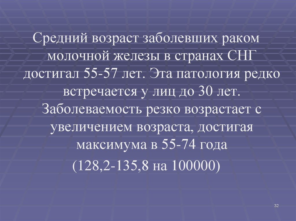 Средний возраст заболевших ракоммолочной железы в странах СНГ