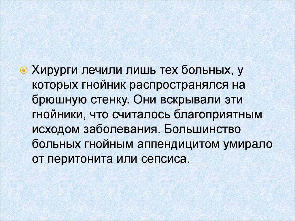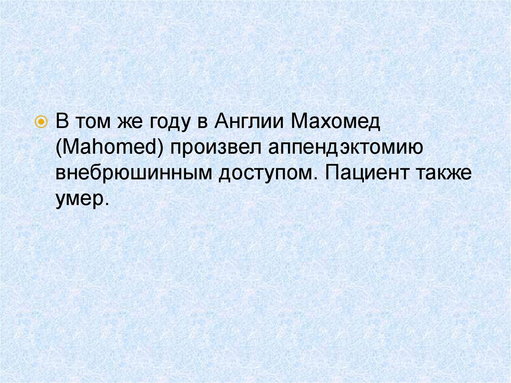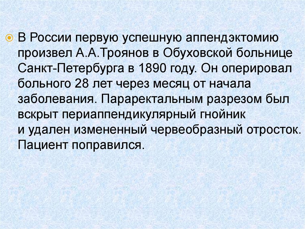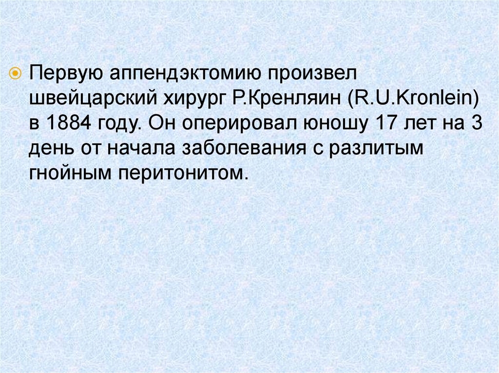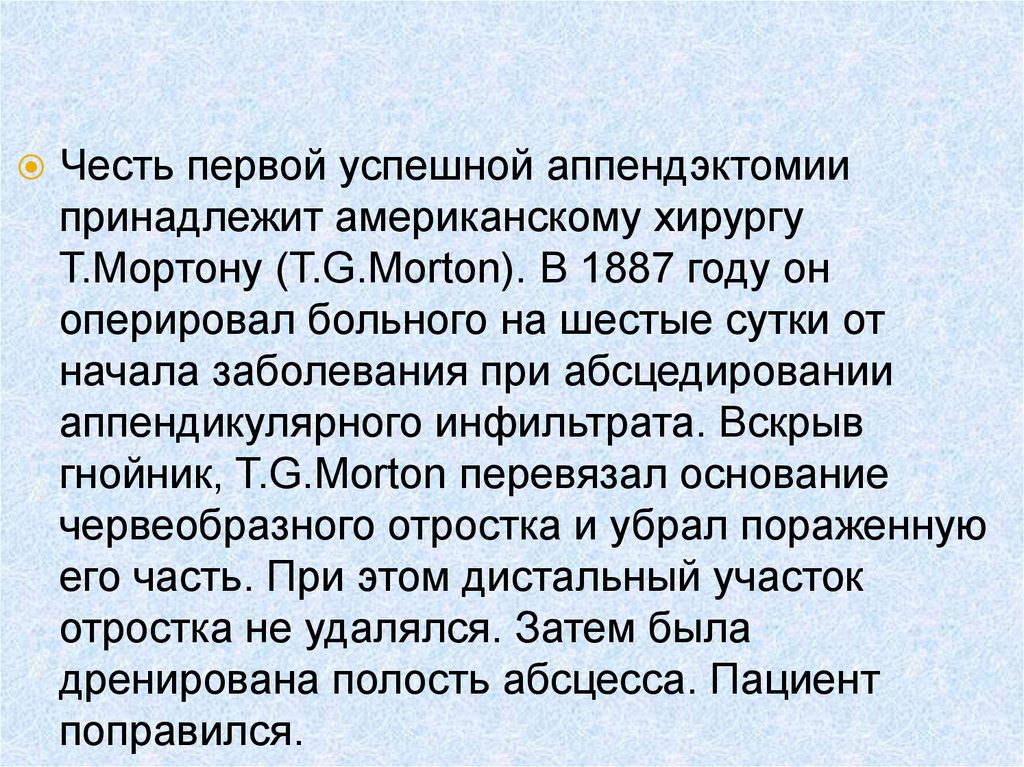 аппендэктомий. Первая