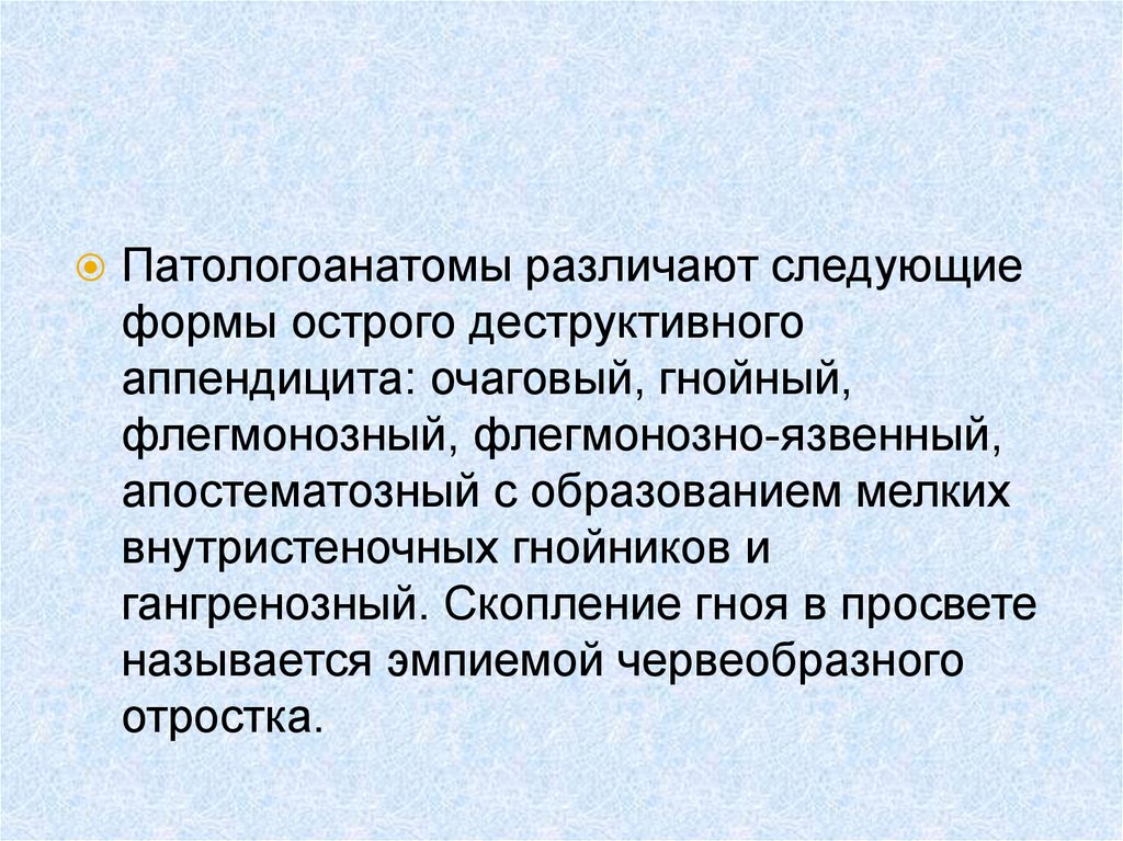 аппендицита несколько уменьшилось.