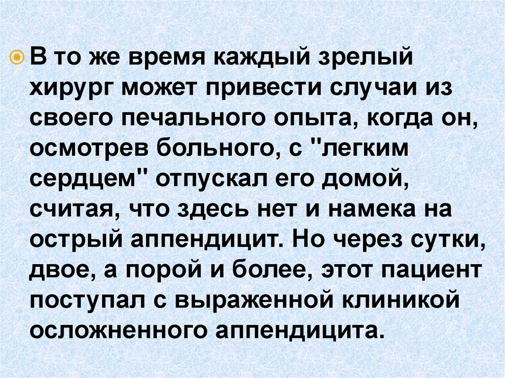 потеряете больного от аппендицита."