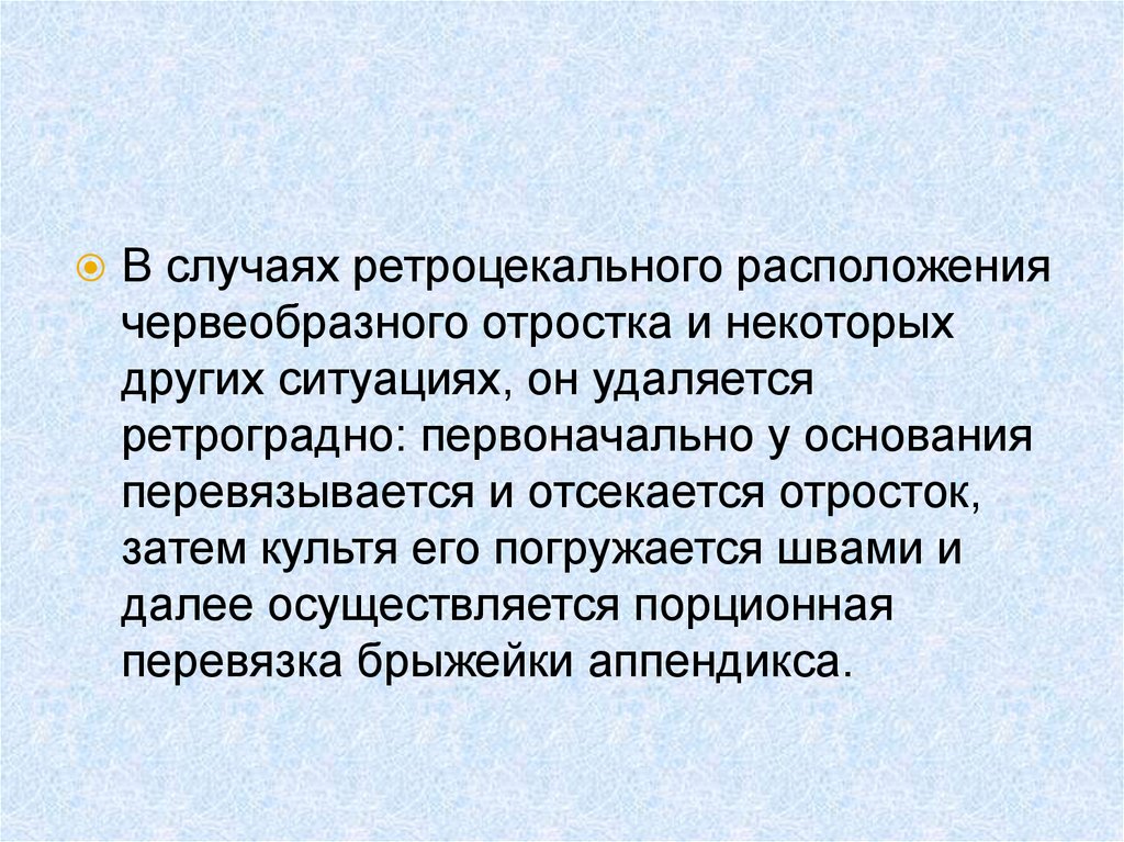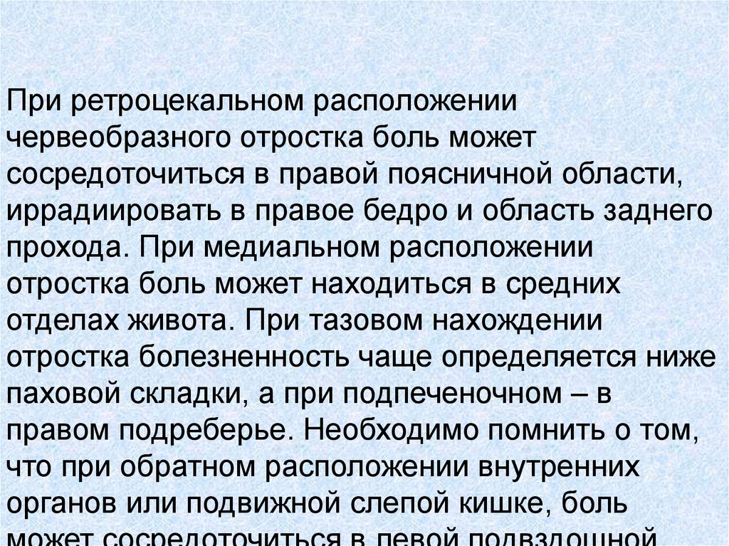 В случаях ретроцекального расположениячервеобразного отростка и некоторых