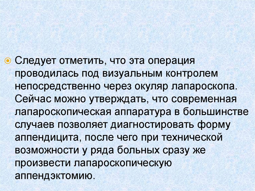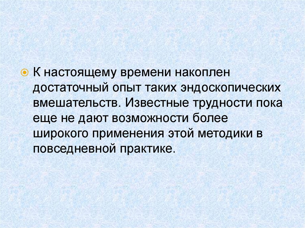 К настоящему времени имеетсядостаточный опыт лапароскопических