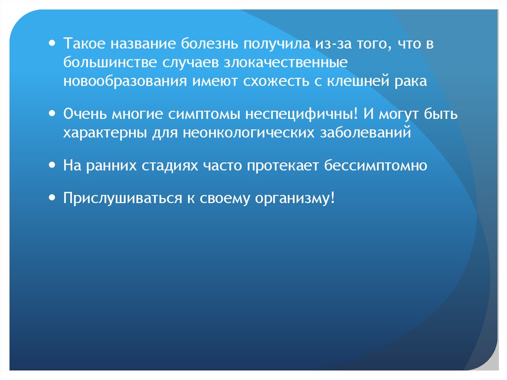 Такое название болезнь получила из-за того, что вбольшинстве случаев злокачественные