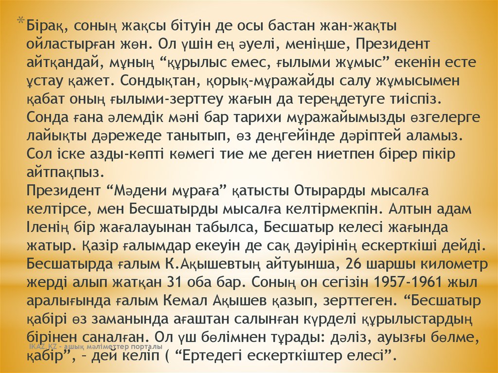 аса мол тарихи дерек қалдырған. Ондағы алдымен жүгінетініміз