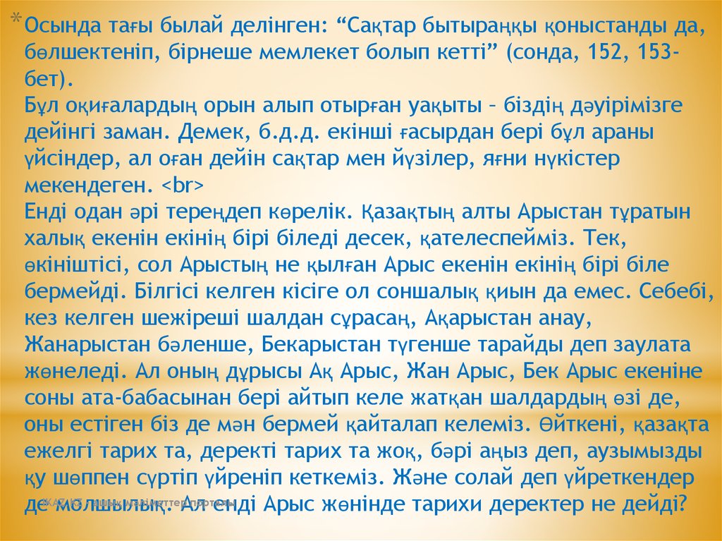 жөнеледі. Ал оның дұрысы Ақ Арыс, Жан Арыс, Бек Арыс екеніне
