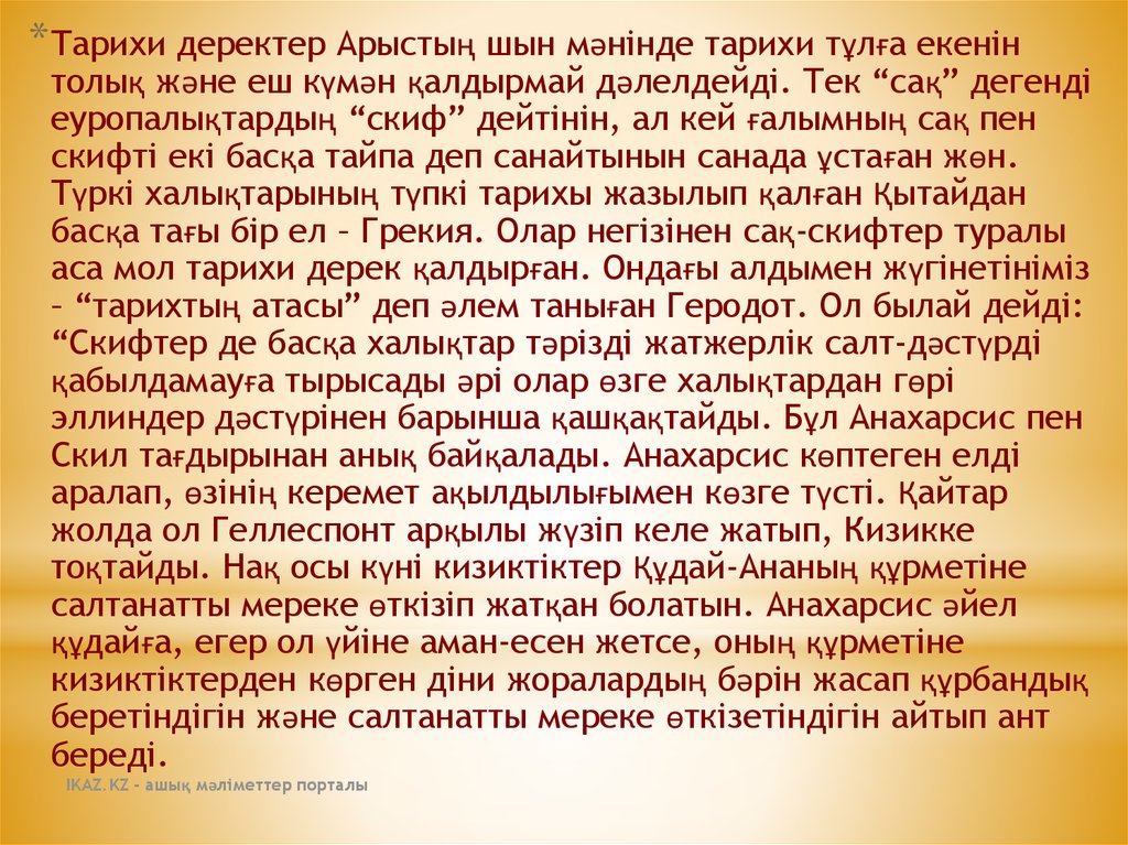 – “тарихтың атасы” деп әлем таныған Геродот. Ол былай дейді:
