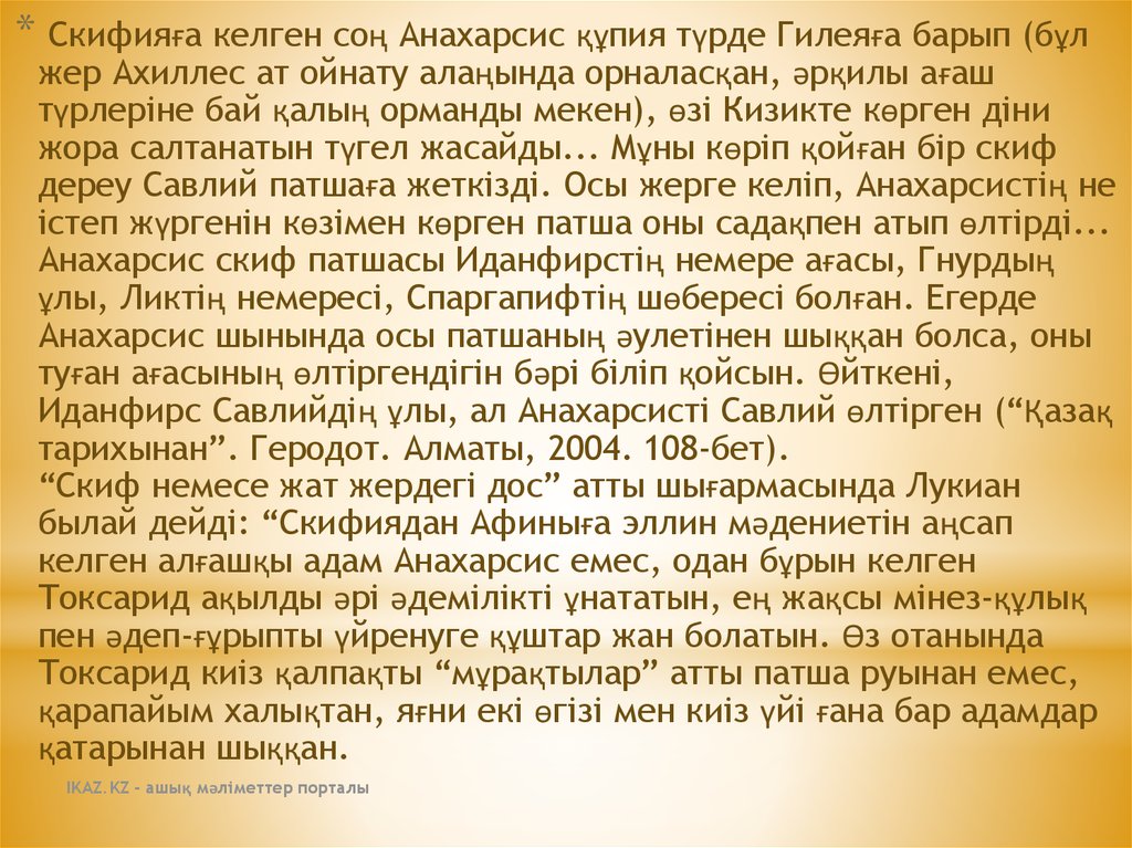 Иданфирс Савлийдің ұлы, ал Анахарсисті Савлий өлтірген (“Қазақ