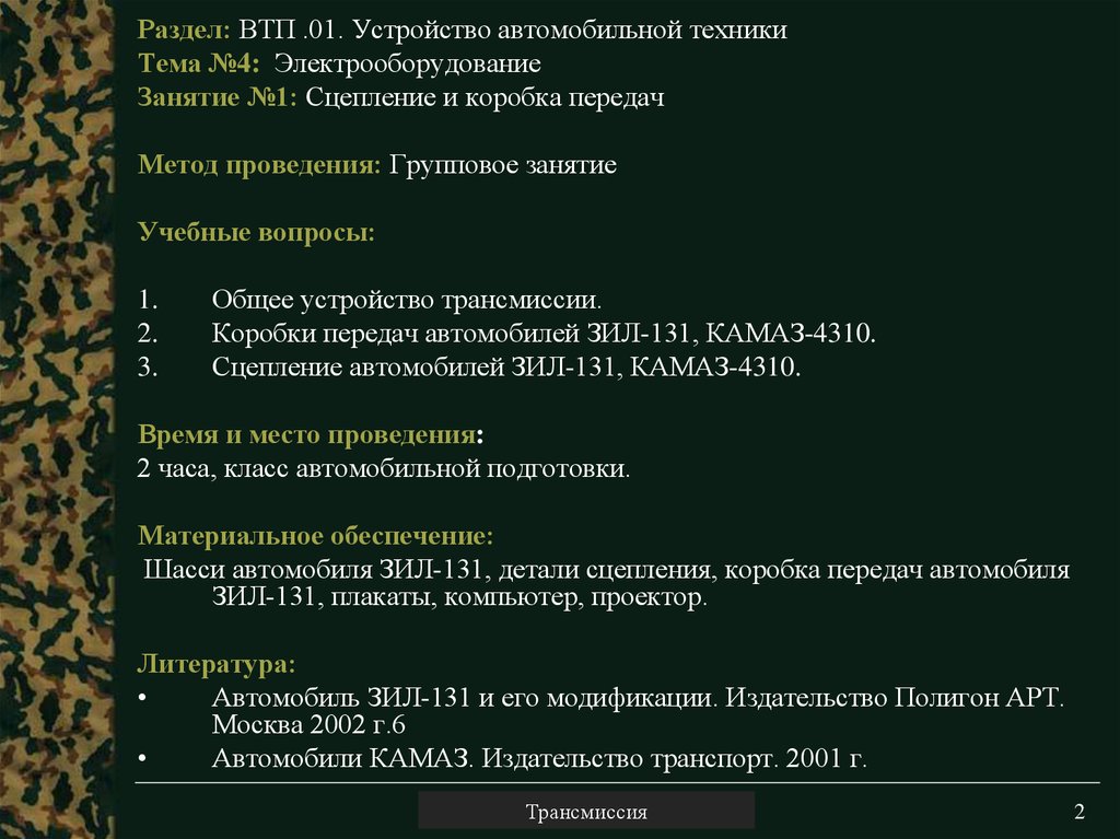 1. Тема №6: Трансмиссия