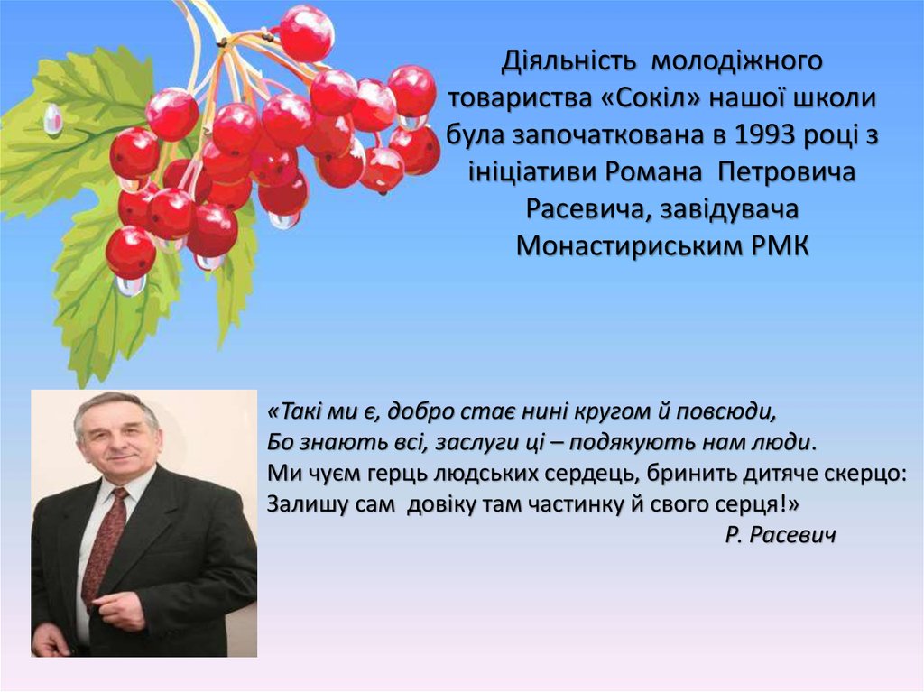 Діяльність молодіжноготовариства «Сокіл» нашої школи