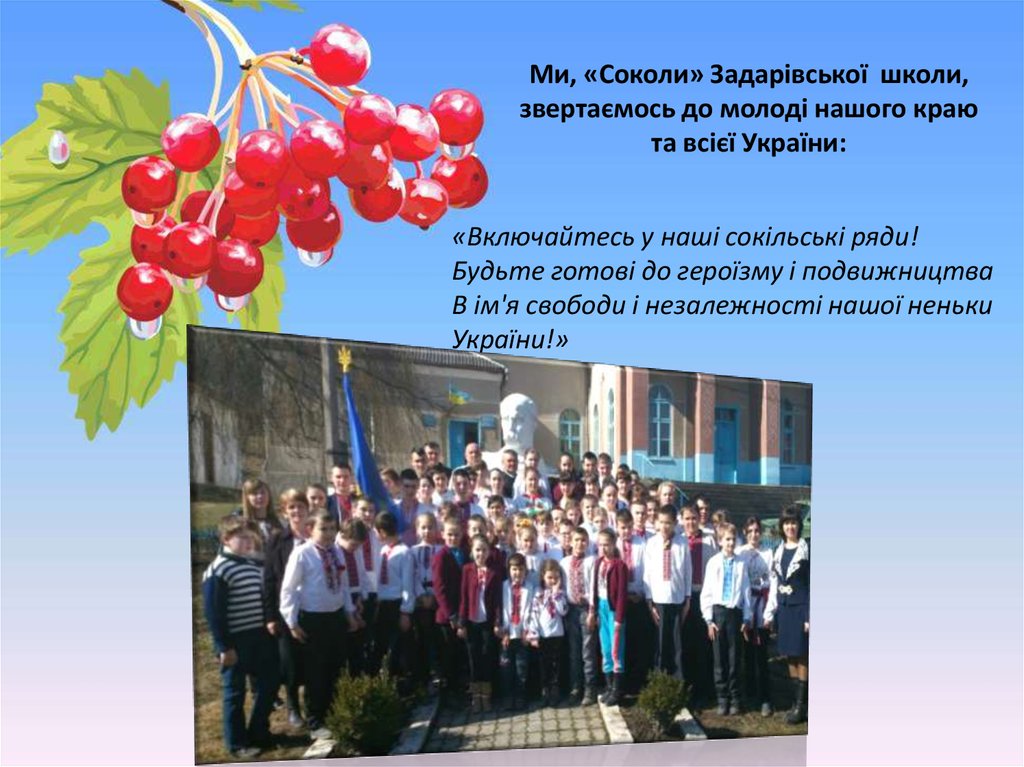 Ми, «Соколи» Задарівської школи,звертаємось до молоді нашого краю