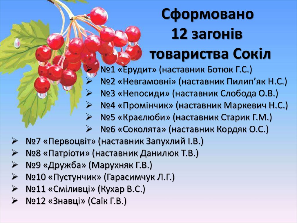Різновікові загони «Сокола» маютьсвого наставника, назву, девіз,