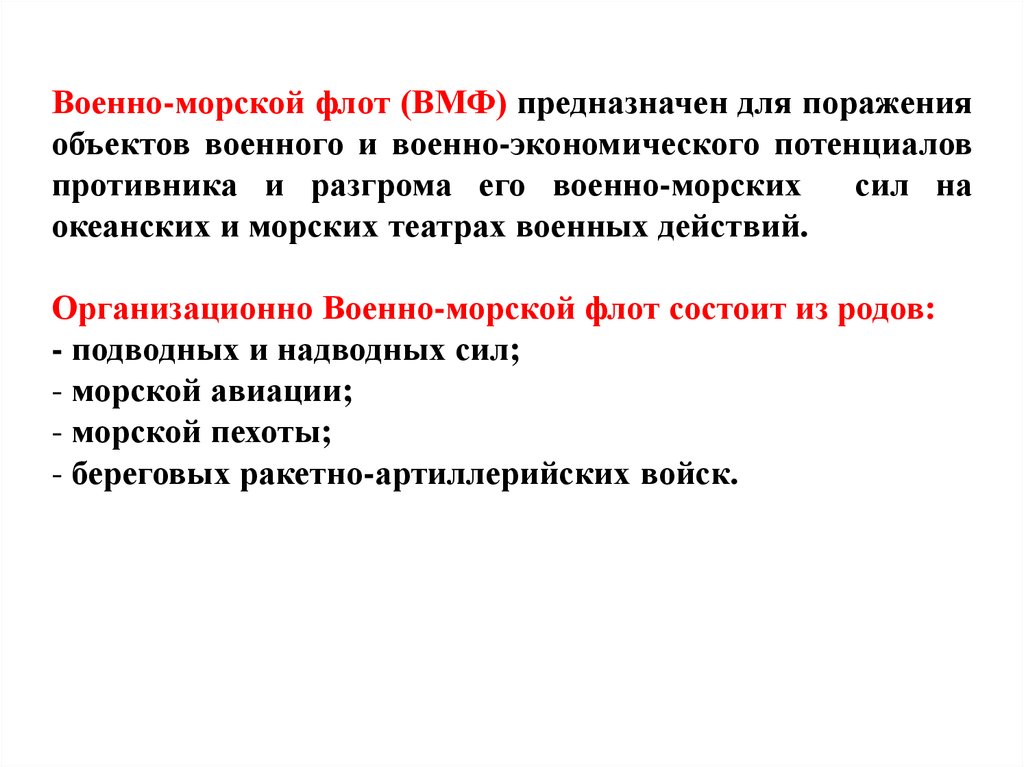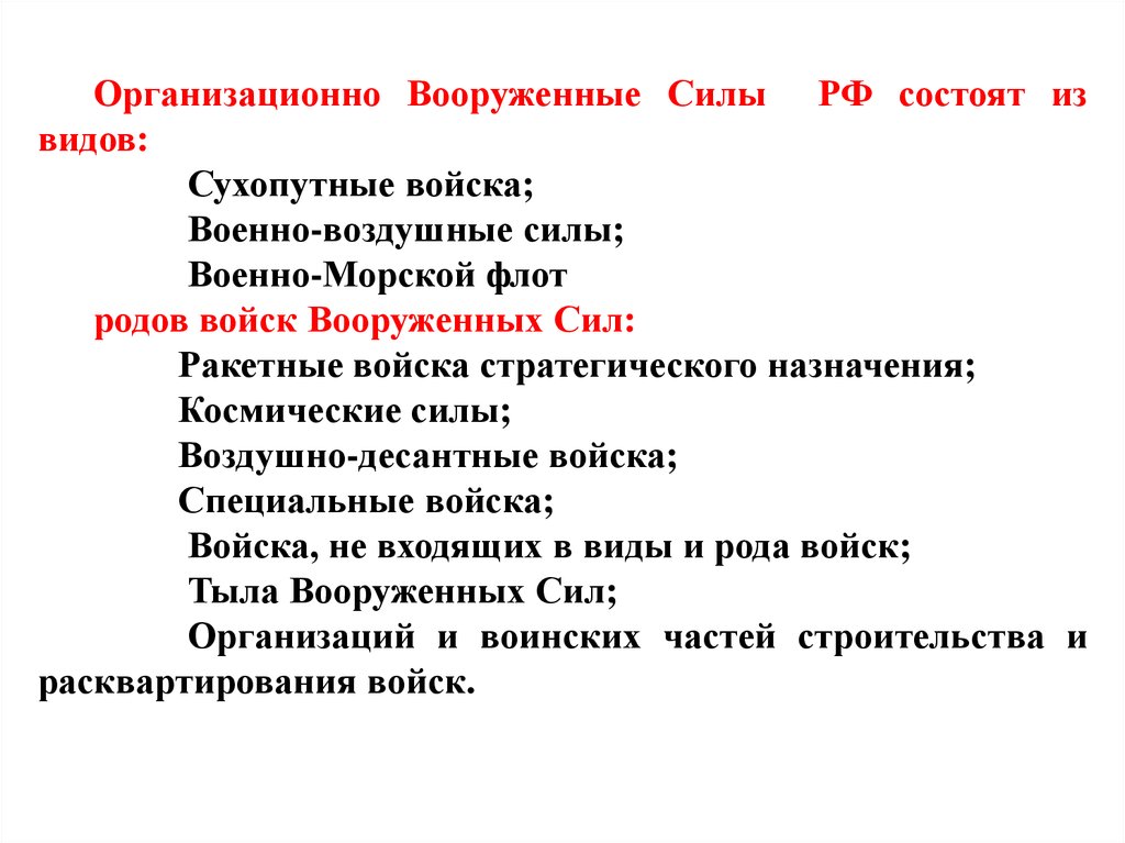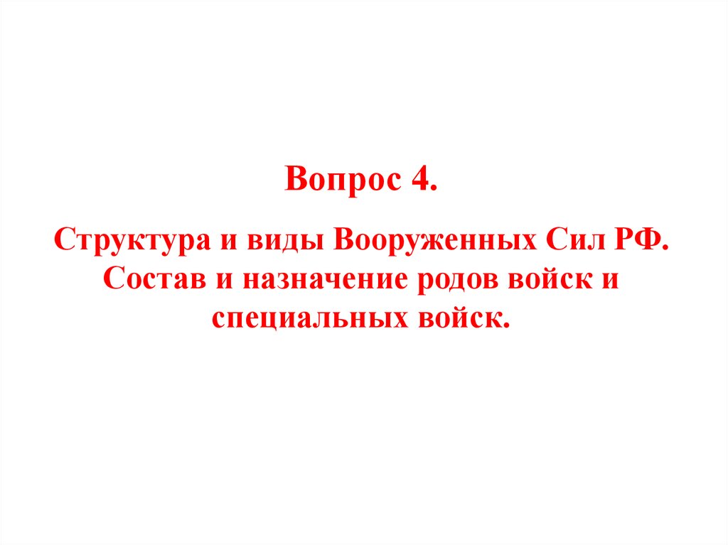 4. Структура и виды Вооруженных Сил РФ. Состав и назначение родов войск
