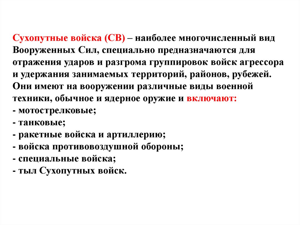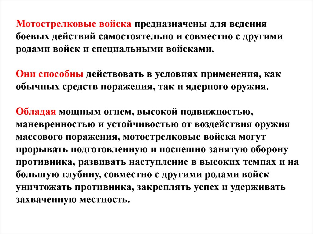 Мотострелковые войска предназначены для ведениябоевых действий самостоятельно и совместно с другими