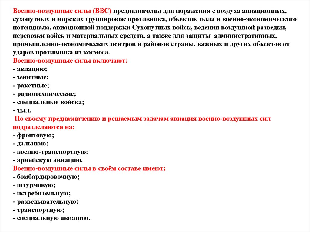 - о структуре и предназначении видов и родов войск Вооруженных Сил