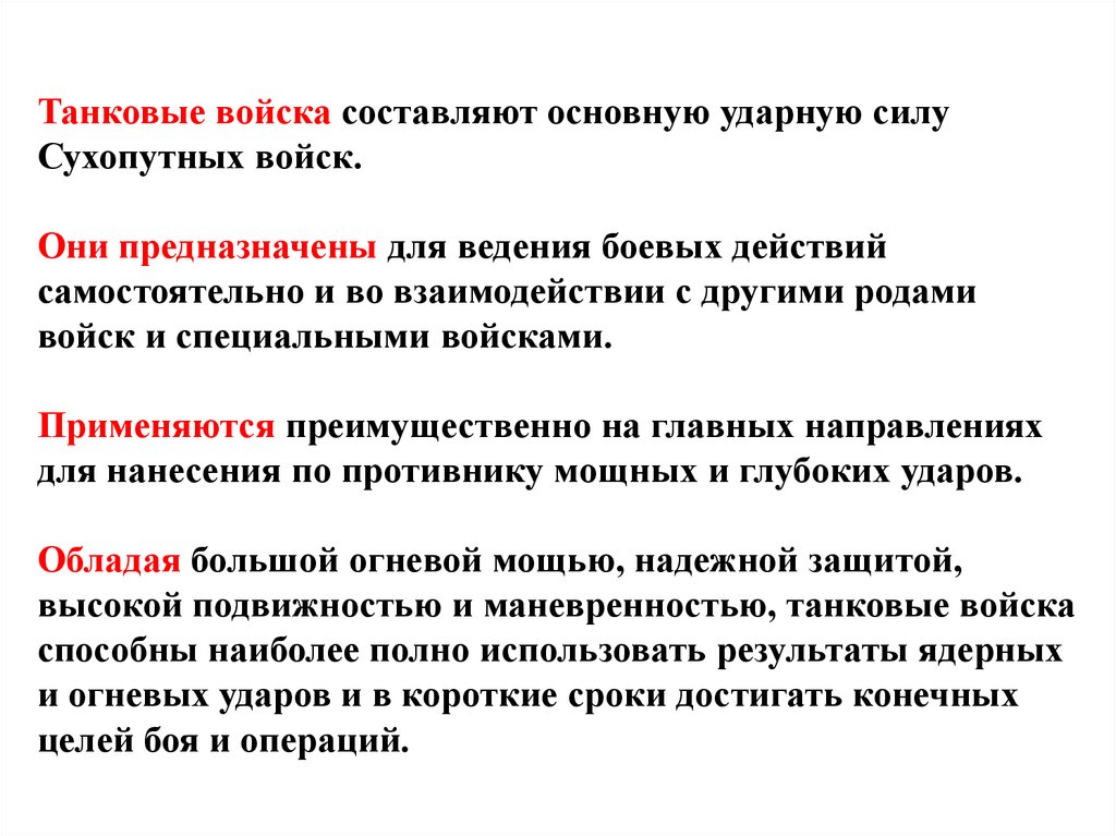высокой подвижностью и маневренностью, танковые войска
