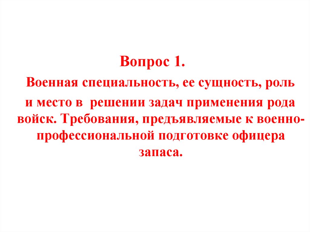 Вопрос 1.Военная специальность, ее сущность, роль