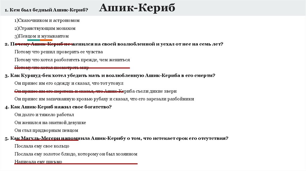 1. Кем был бедный Ашик-Кериб?Ашик-Кериб