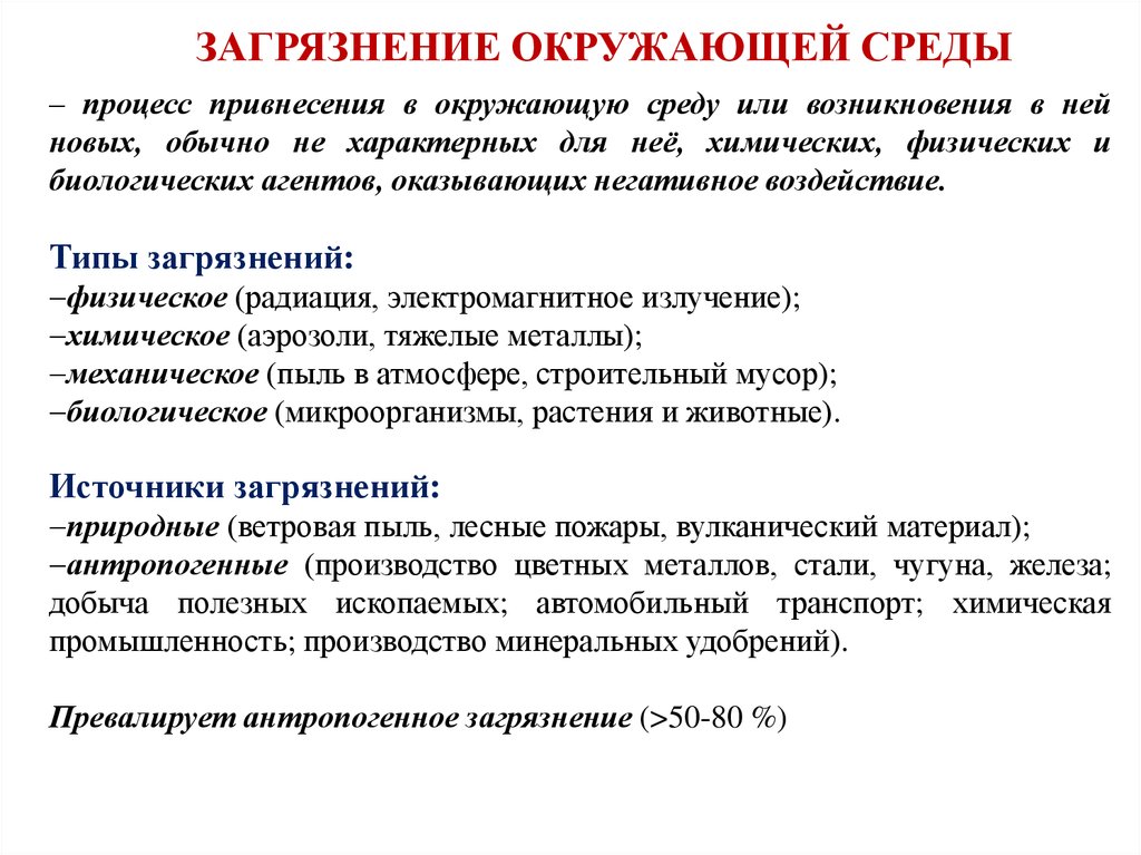 ЗАГРЯЗНЕНИЕ ОКРУЖАЮЩЕЙ СРЕДЫ– процесс привнесения в окружающую среду или возникновения в ней