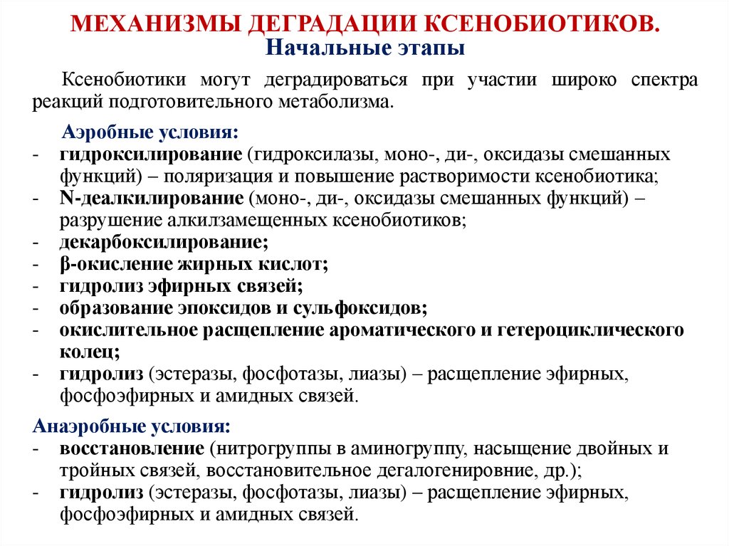 • реакции деметилирования, декарбоксилирования, дезаминирования и