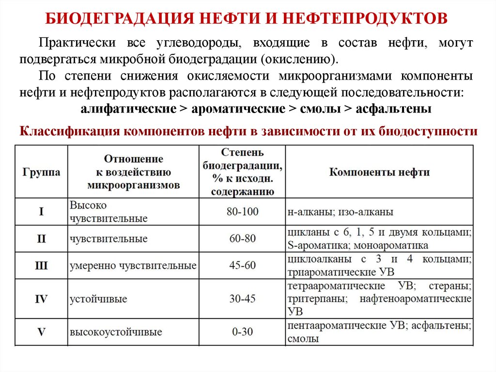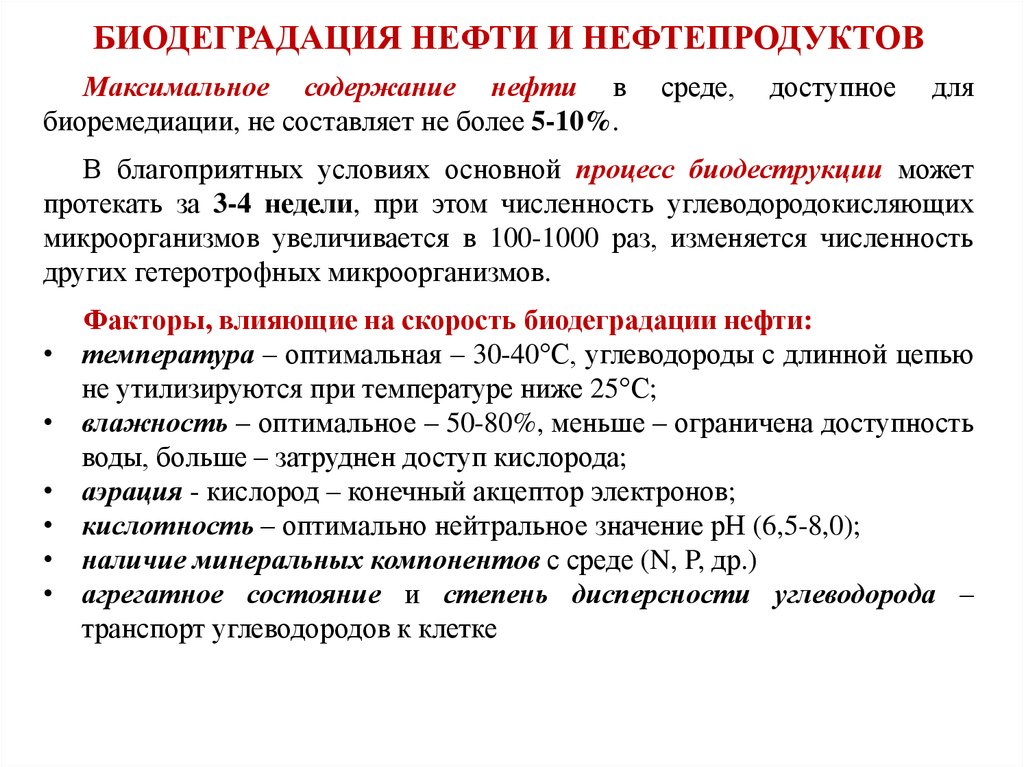 • в оптимальных условиях в смешанных культурах скорость деградации