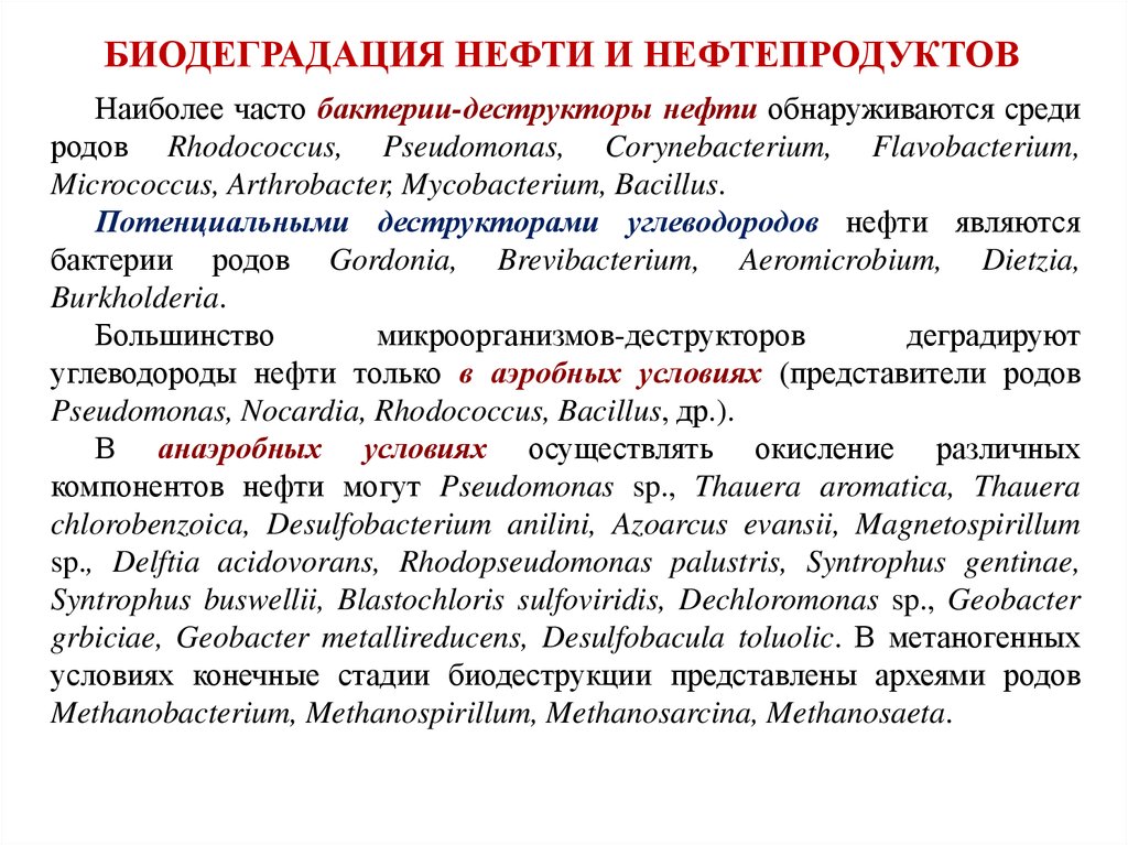 • разлагаются бактериями родов Pseudomonas, Xanthamonas, Sarcina,