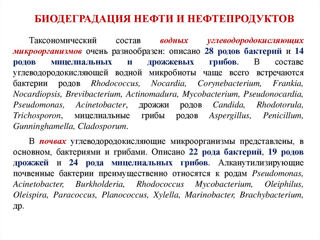 бактерии родов Pseudomonas, Arthrobacter, дрожжи и плесневые грибы