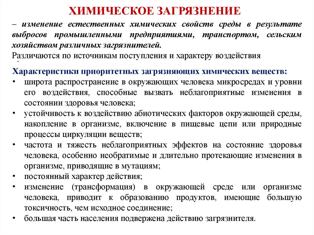 ХИМИЧЕСКОЕ ЗАГРЯЗНЕНИЕ– изменение естественных химических свойств среды в результате