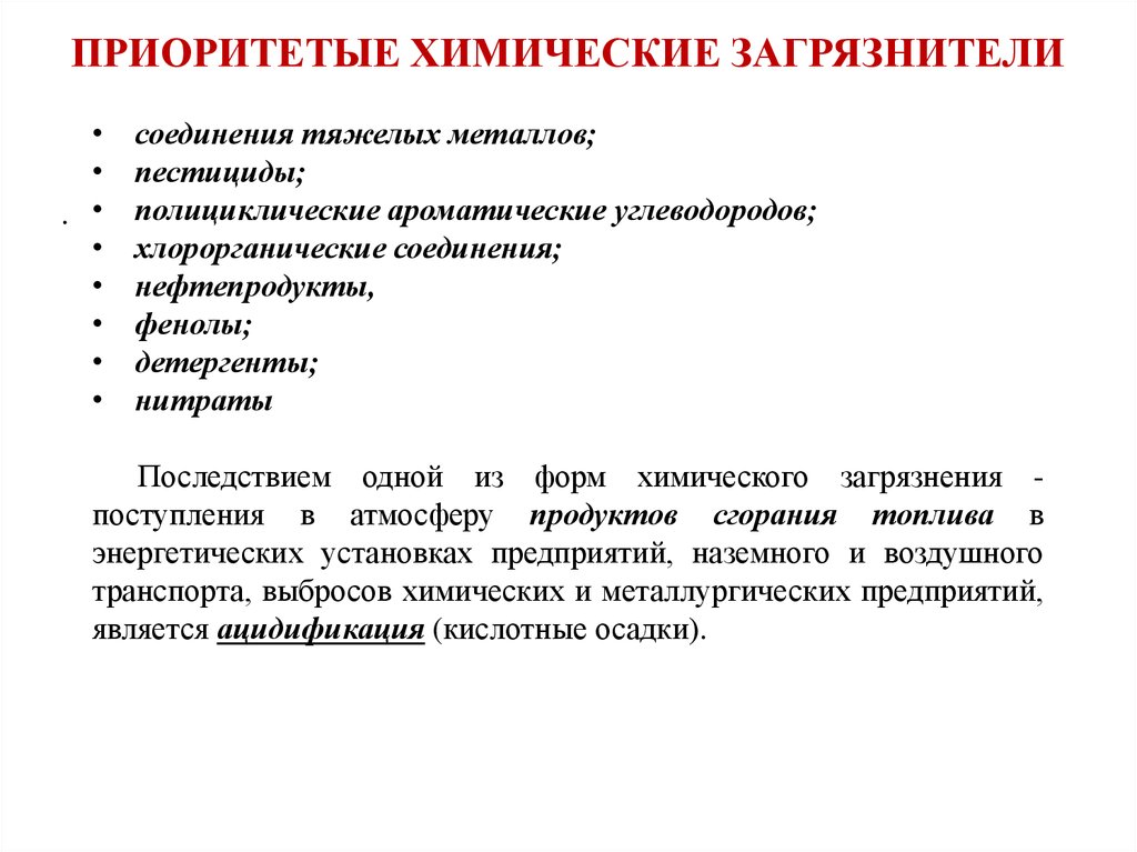 ПРИОРИТЕТЫЕ ХИМИЧЕСКИЕ ЗАГРЯЗНИТЕЛИ.