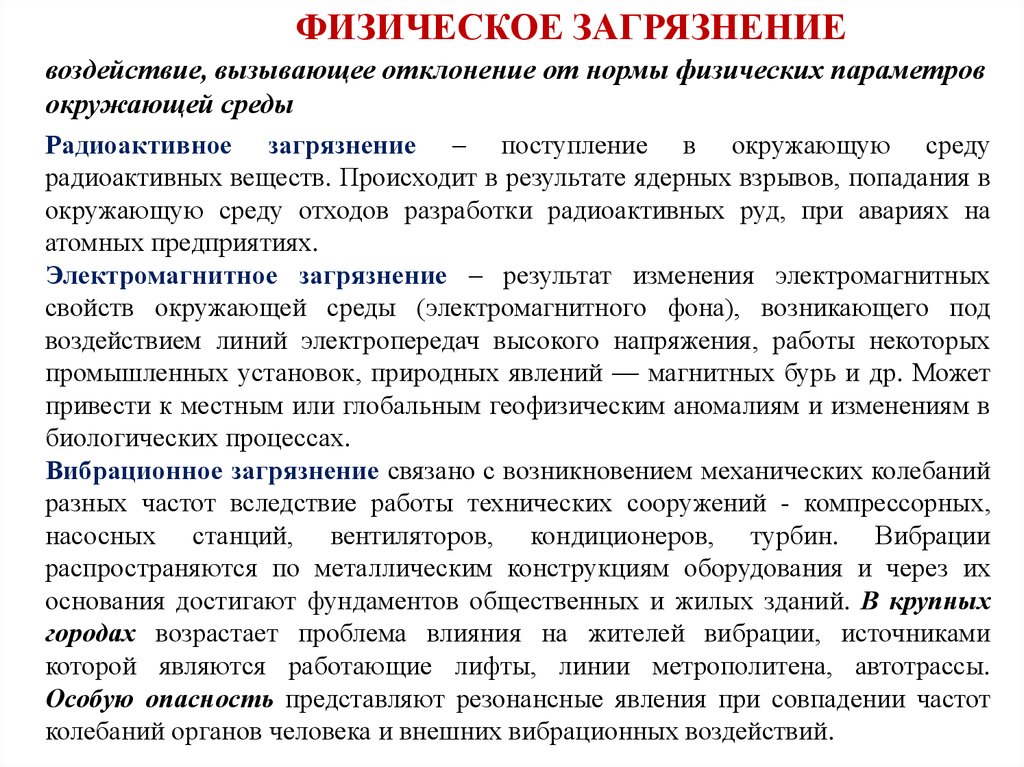 ФИЗИЧЕСКОЕ ЗАГРЯЗНЕНИЕвоздействие, вызывающее отклонение от нормы физических параметров