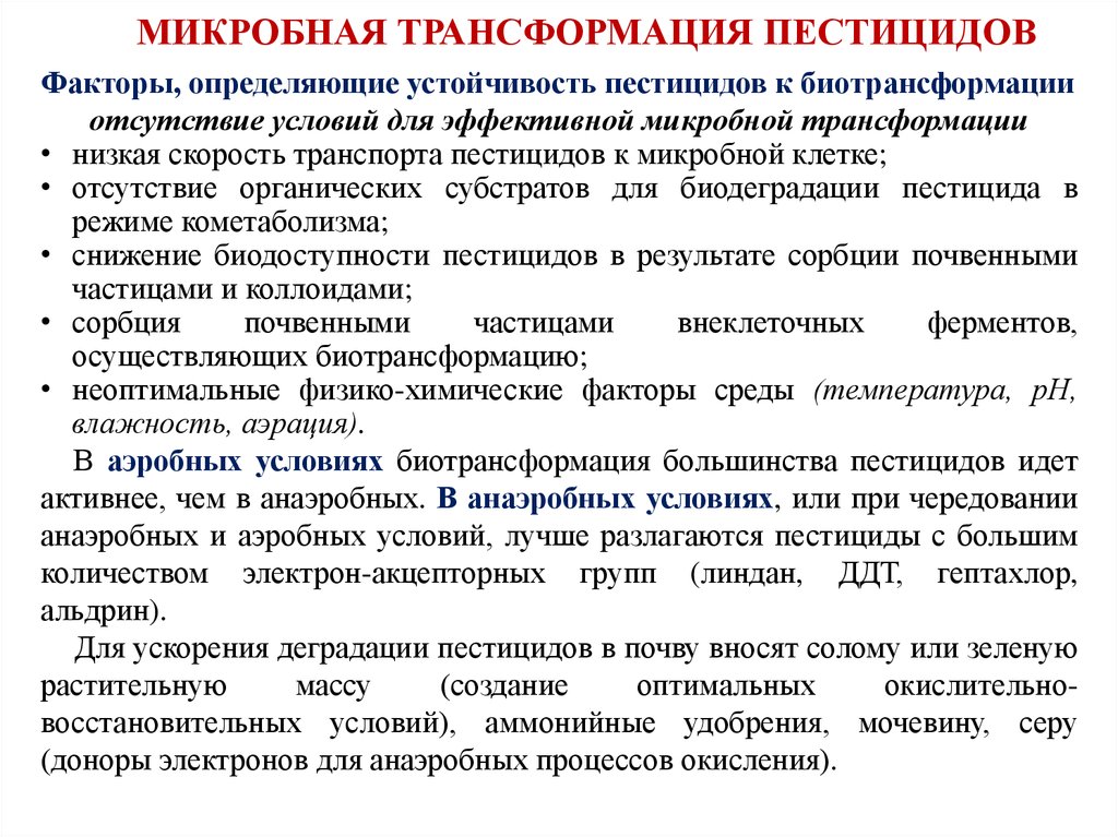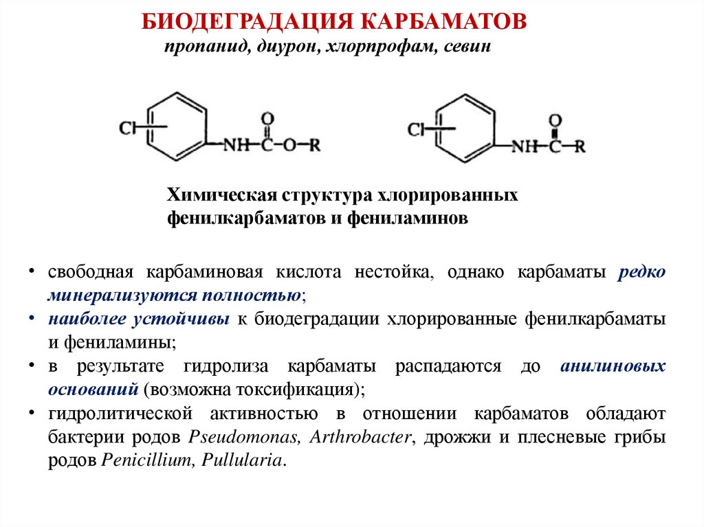 • наиболее устойчивы к биодеградации хлорированные фенилкарбаматы
