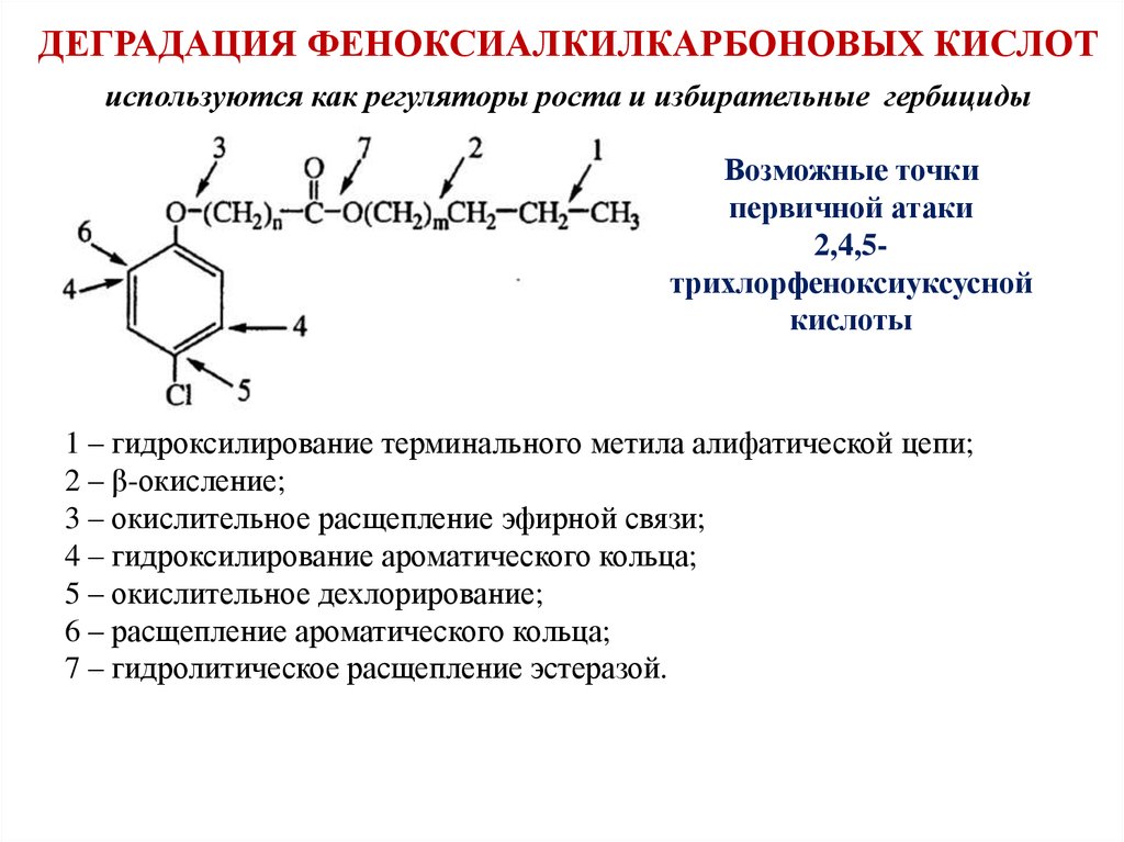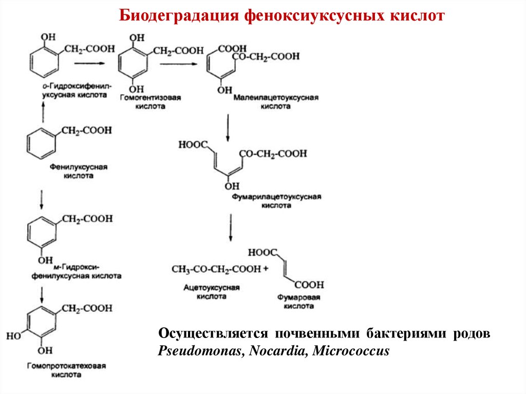 Биодеградация феноксиуксусных кислотОсуществляется почвенными бактериями родов
