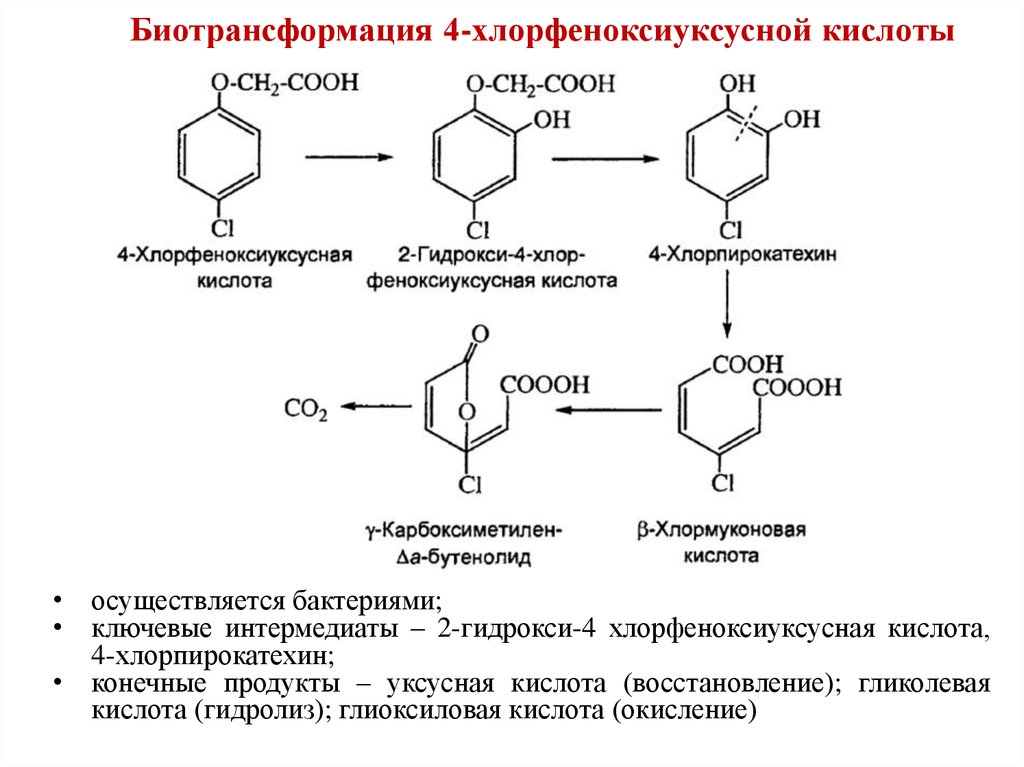• ключевые интермедиаты – 2-гидрокси-4 хлорфеноксиуксусная кислота,