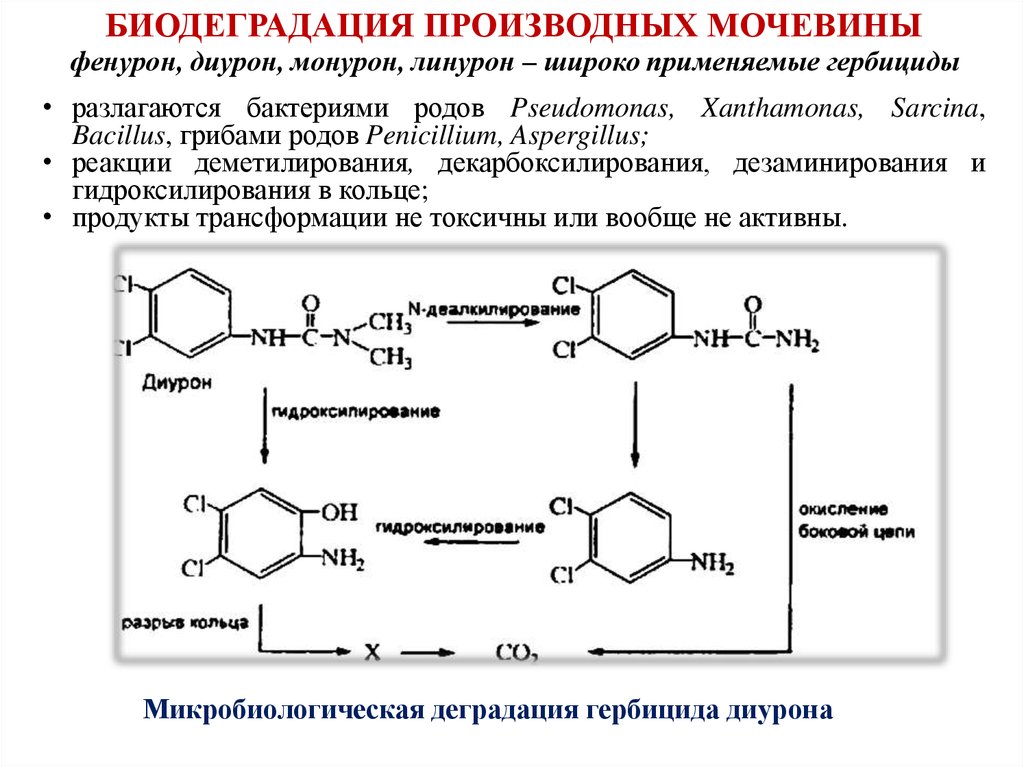 БИОДЕГРАДАЦИЯ ПРОИЗВОДНЫХ МОЧЕВИНЫфенурон, диурон, монурон, линурон – широко применяемые гербициды