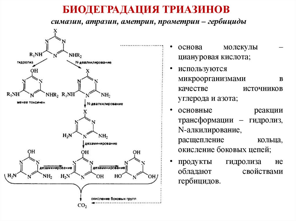 БИОДЕГРАДАЦИЯ ТРИАЗИНОВсимазин, атразин, аметрин, прометрин – гербициды