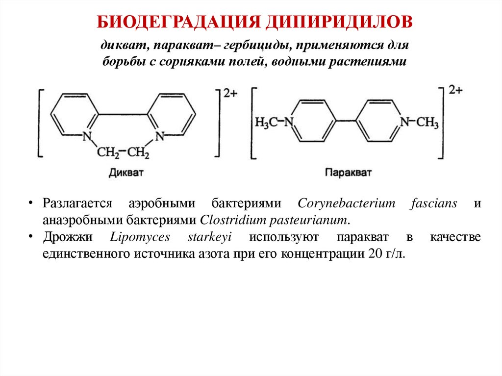 БИОДЕГРАДАЦИЯ ДИПИРИДИЛОВдикват, паракват– гербициды, применяются для