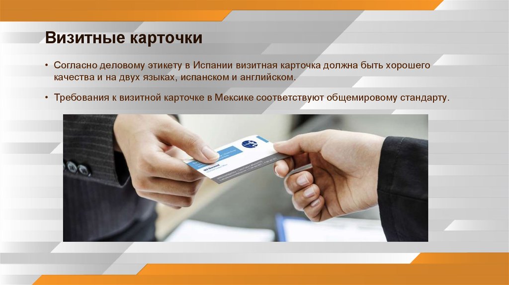 • Требования к визитной карточке в Мексике соответствуют общемировому стандарту.
