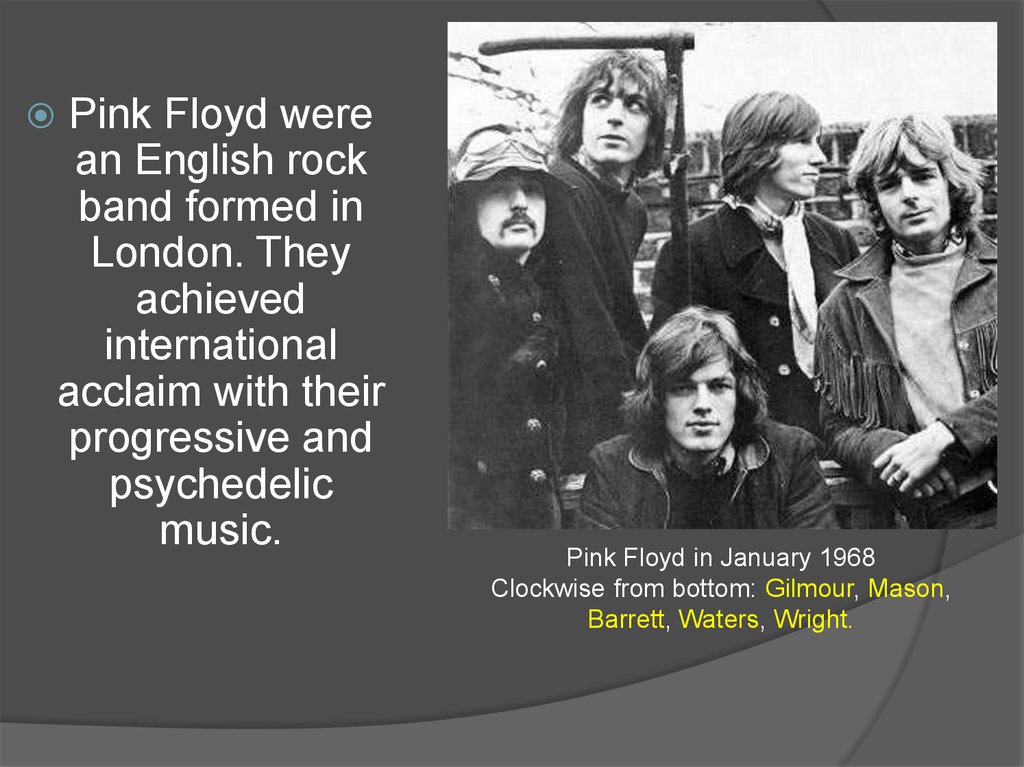 Pink Floyd were founded in 1965 bystudents Syd Barrett on guitar and lead