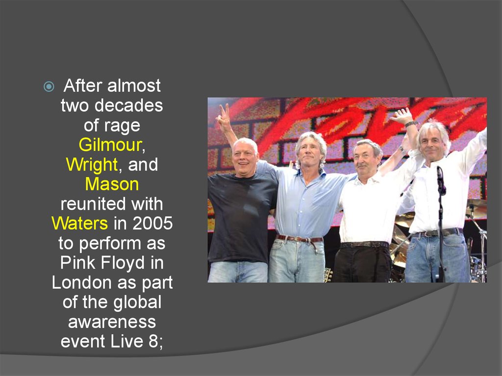 Following creative tensions, Wright leftPink Floyd in 1979, followed by Waters