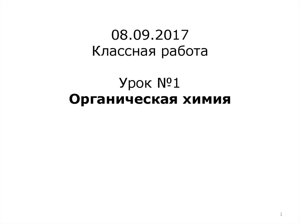 1. 08.09.2017 Классная работа Урок №1 Органическая химия