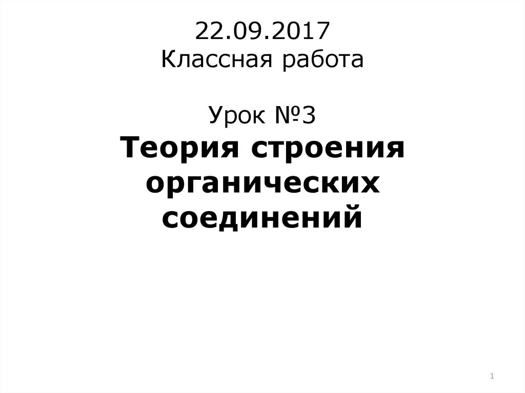 1. 22.09.2017 Классная работа Урок №3 Теория строения органических соединений