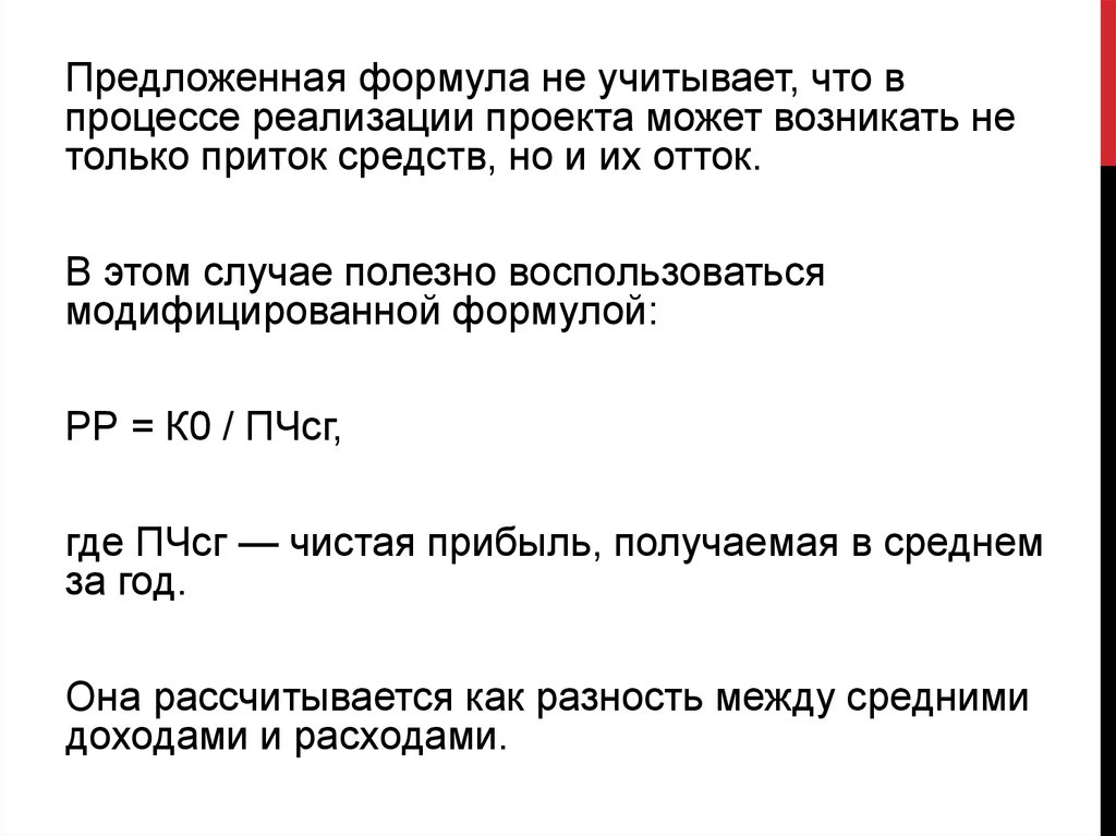 Предложенная формула не учитывает, что впроцессе реализации проекта может возникать не