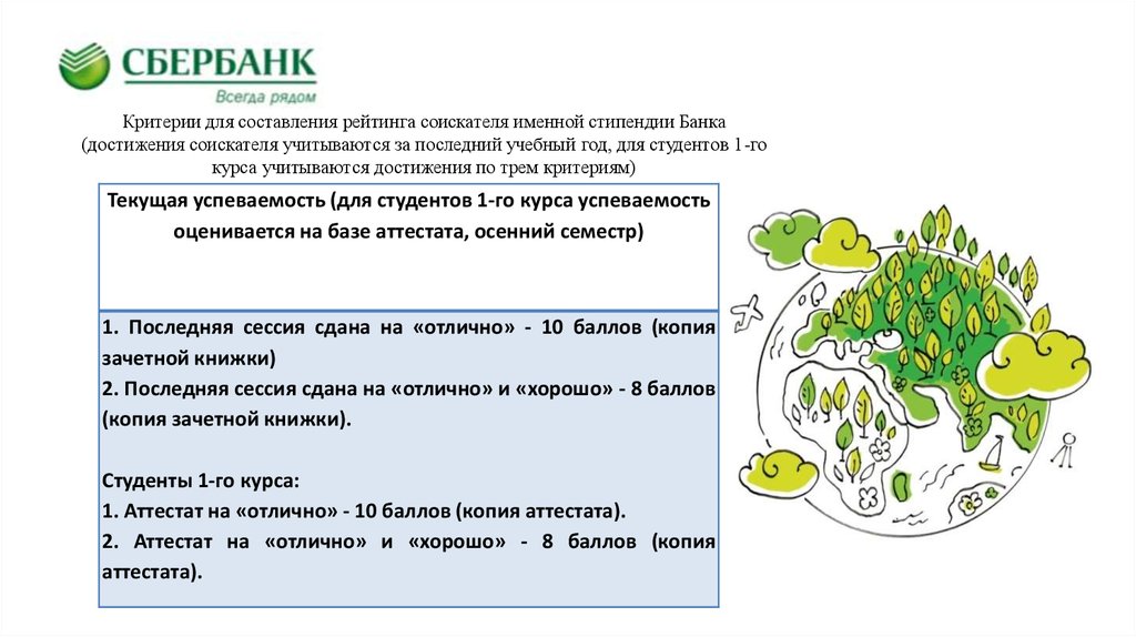 Критерии для составления рейтинга соискателя именной стипендии Банка(достижения соискателя учитываются за последний учебный год, для студентов 1-го