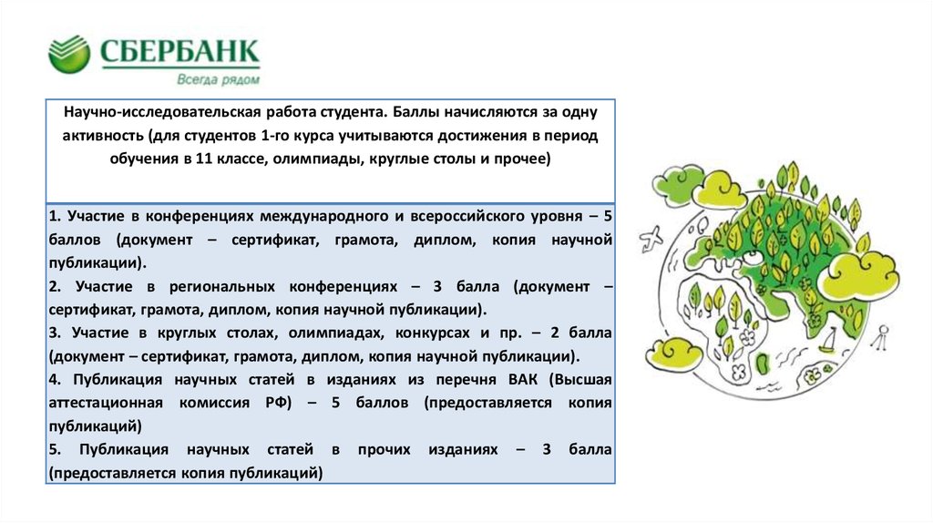 Научно-исследовательская работа студента. Баллы начисляются за однуактивность (для студентов 1-го курса учитываются достижения в период