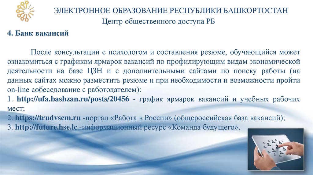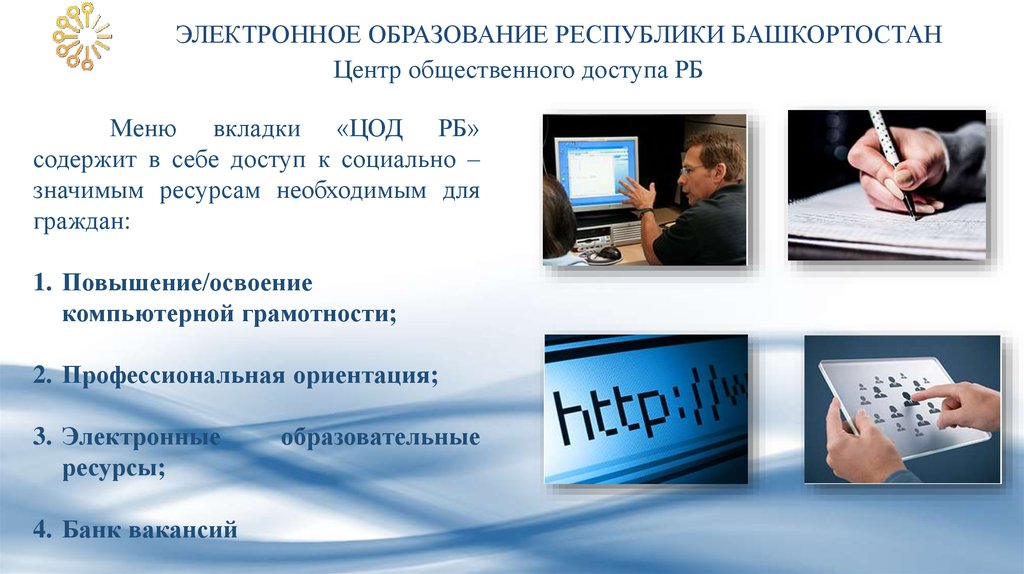 ЭЛЕКТРОННОЕ ОБРАЗОВАНИЕ РЕСПУБЛИКИ БАШКОРТОСТАНЦентр общественного доступа РБ