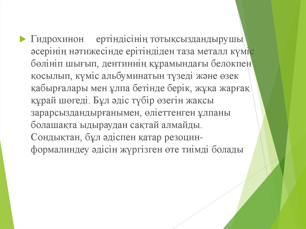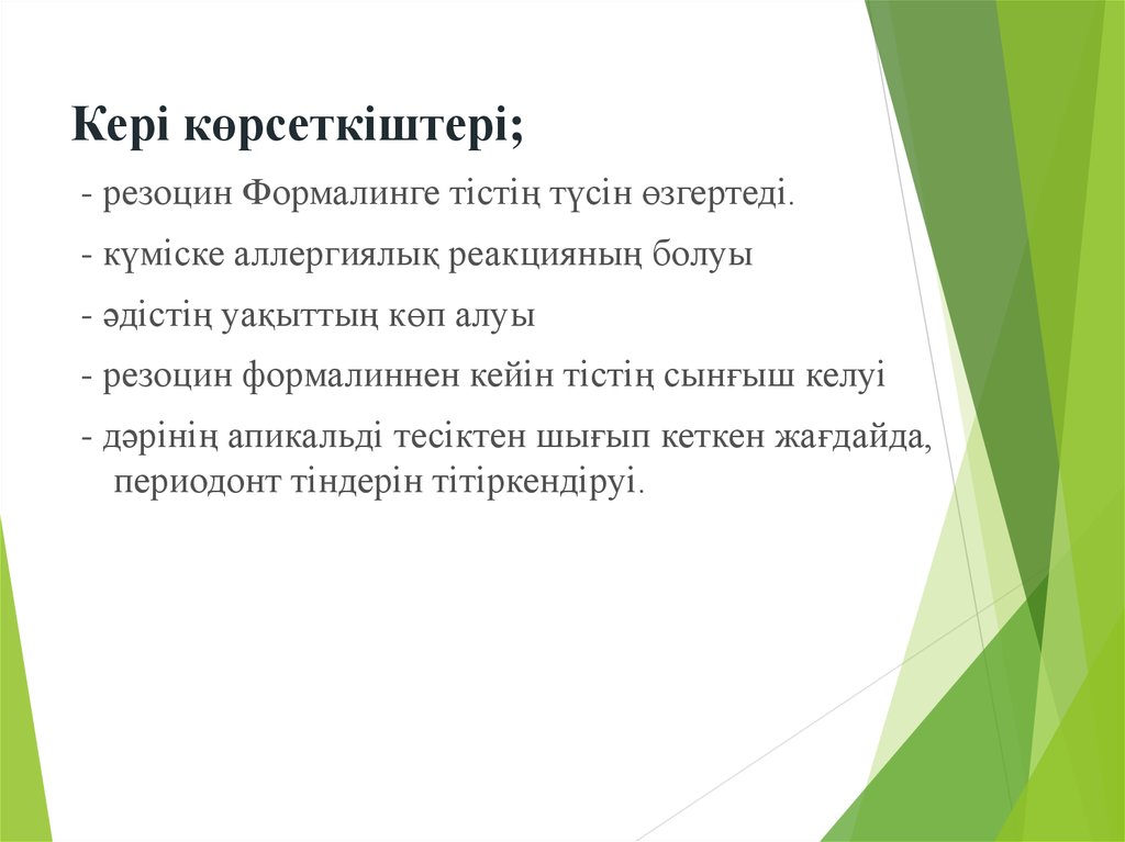 Кері көрсеткіштері;- резоцин Формалинге тістің түсін өзгертеді.