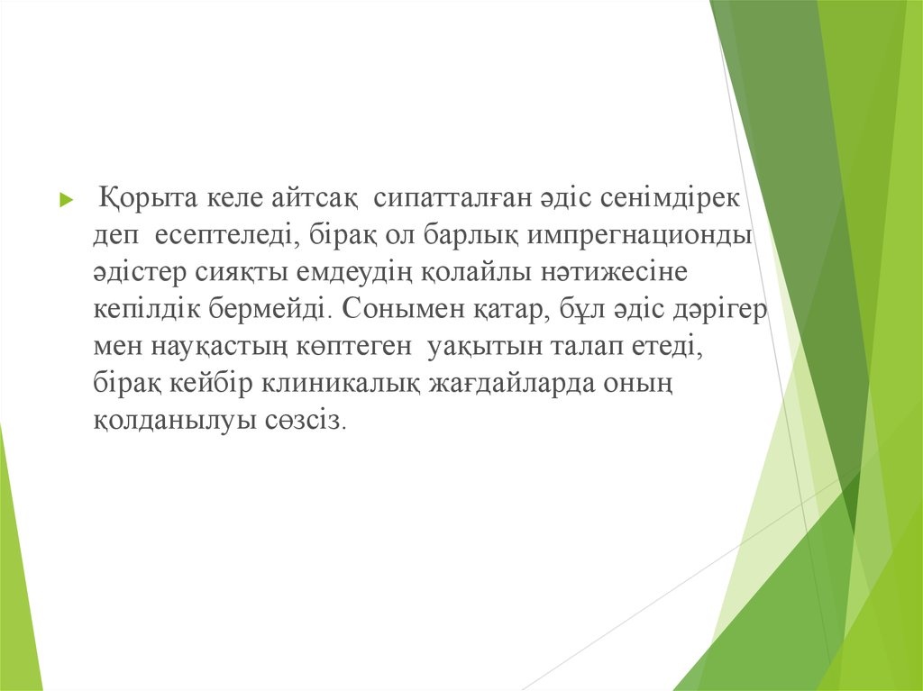 Қорыта келе айтсақ сипатталған әдіс сенімдірекдеп есептеледі, бірақ ол барлық импрегнационды